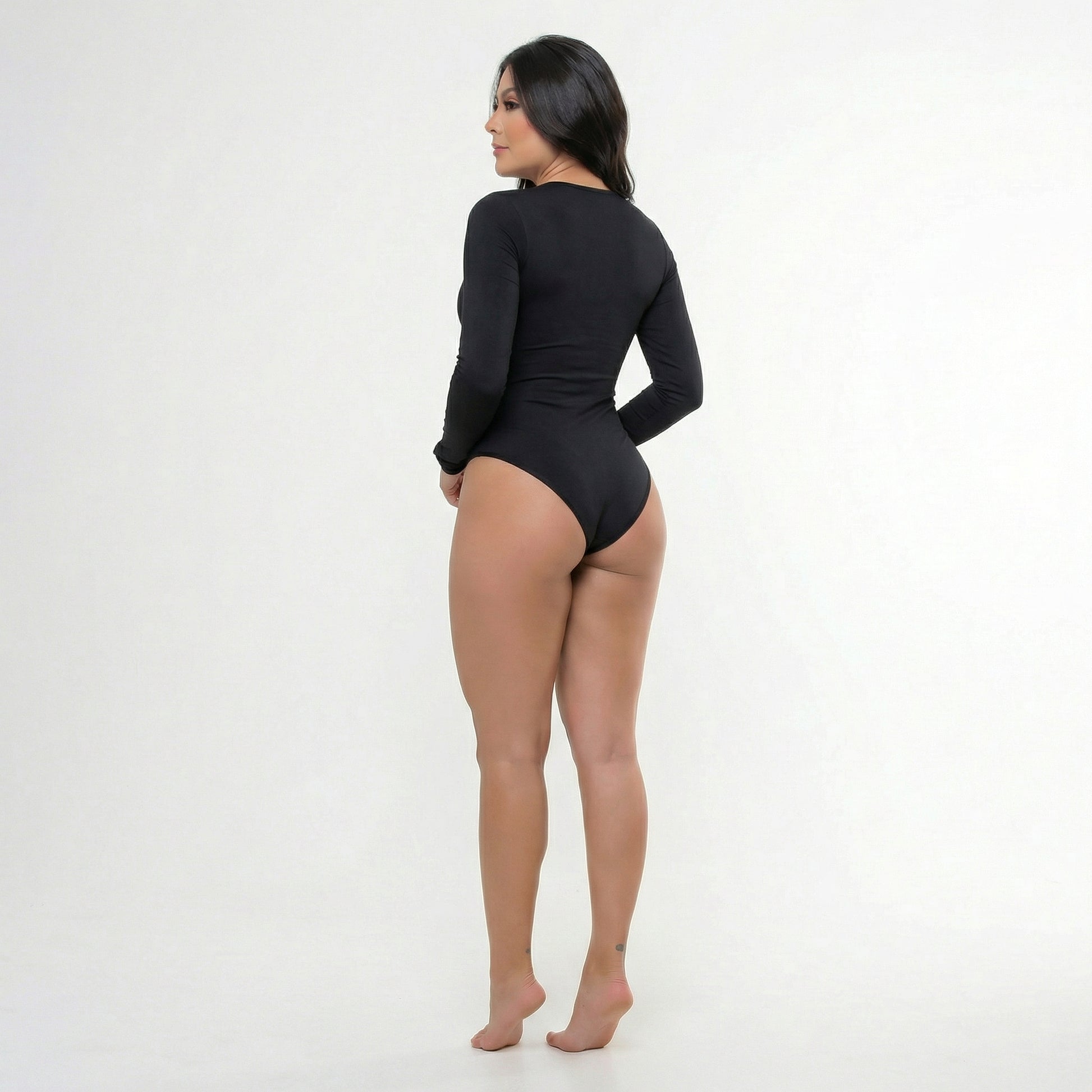 Nuestro Body Manga Larga está diseñado para brindar un efecto moldeador natural que define el abdomen y realza los glúteos sin marcar ni incomodar. Su diseño de manga larga estiliza la silueta y lo convierte en una prenda versátil, perfecta para usar sola o debajo de tu outfit.